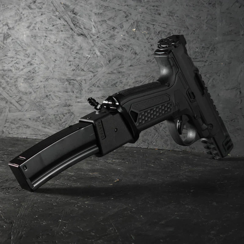 Up your game with our new GLK/AAP-01 to MP5 HPA Adapter. This adapter allows you to run your gun on HPA, while using CYMA MP5 midcap magazines, which offer increased capacity and lower cost over gas magazines. You won't suffer from gas troubles, and will be able to full auto all day long!